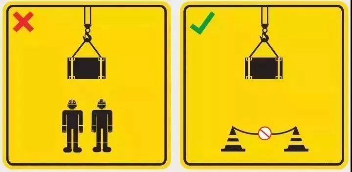 6、在起重区周围设置充足的告示牌和护栏,切勿在任何人上方悬挂负载物。