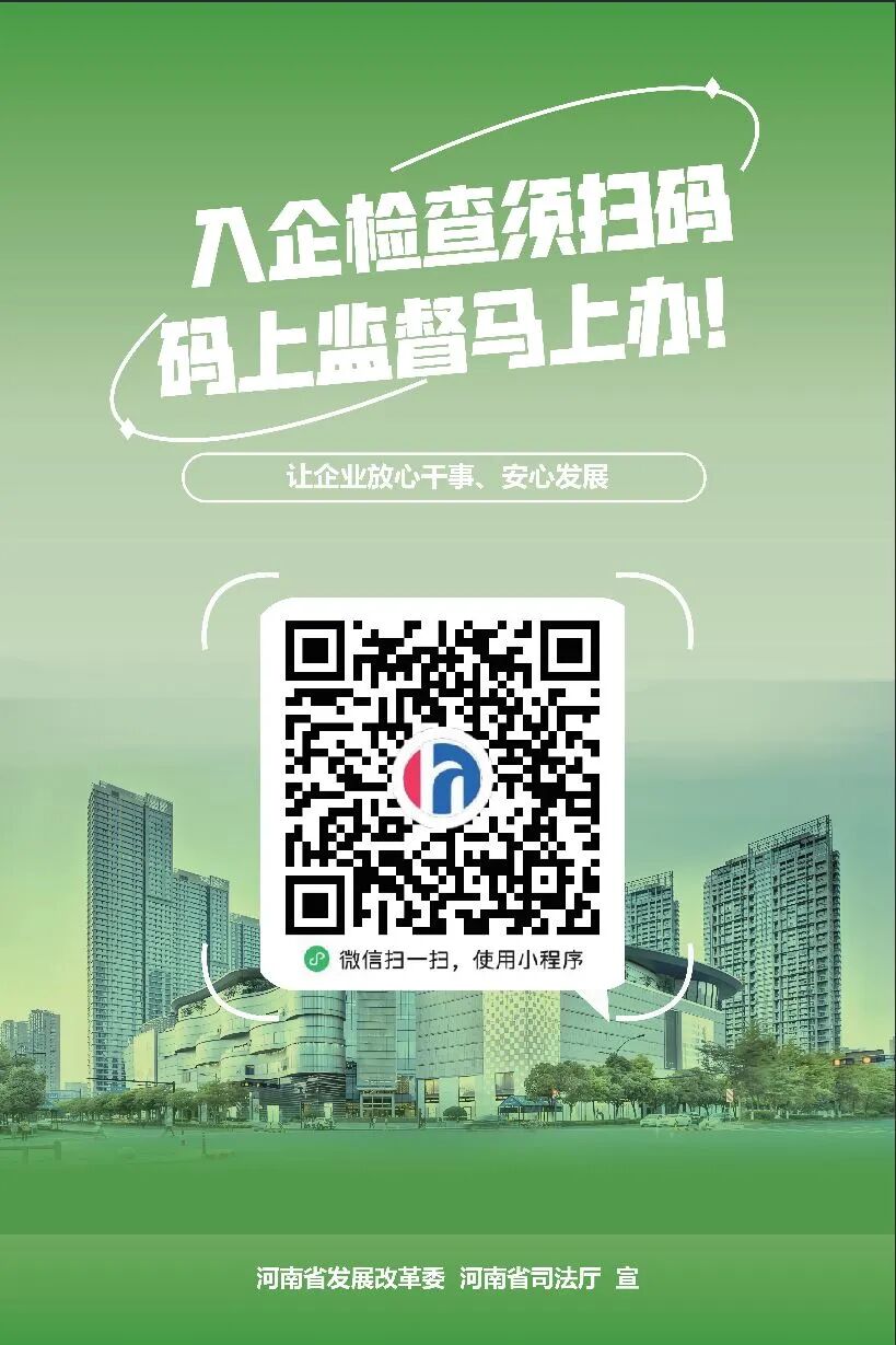 近日,为进一步规范涉企行政检查,坚决遏制随意检查、多头检查等行为,切实为企业减轻迎检压力,营造安心经营、放心创业的优质营商环境,省发展和改革委、司法厅联合牵头建设河南省营商环境扫码入企监测管理平台,实现省域营商环境扫码入企工作全覆盖。